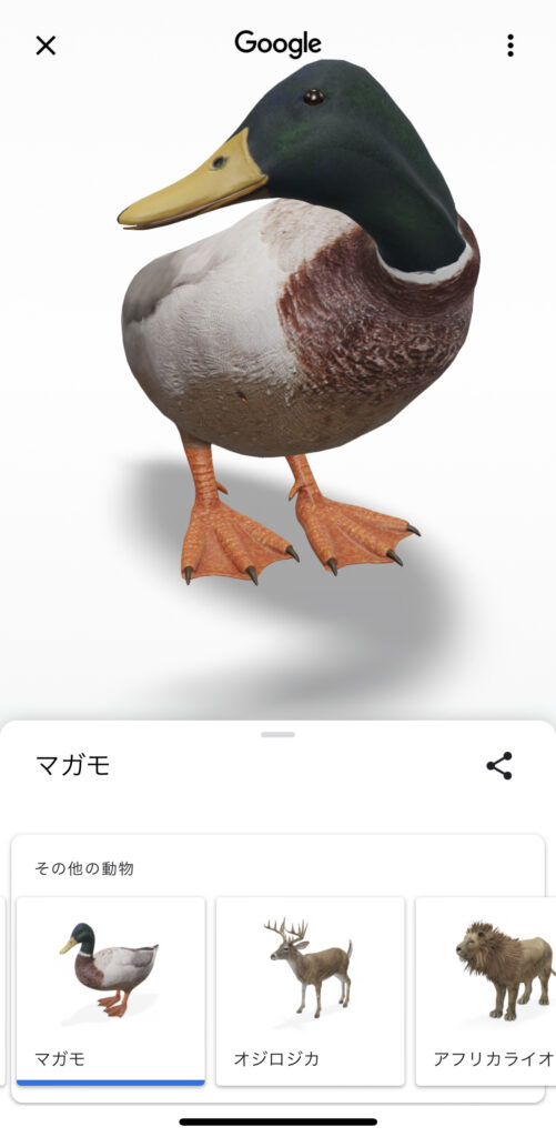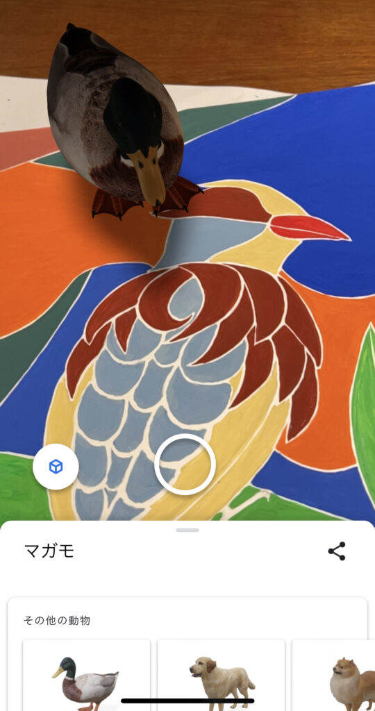 これだけですが、試しに動物のカモを、うちのアトリエテーブルの上に出現させました。画像は静止画ですが実際には、動いています。動きもなかなか良くできていますので、お試しあれ。